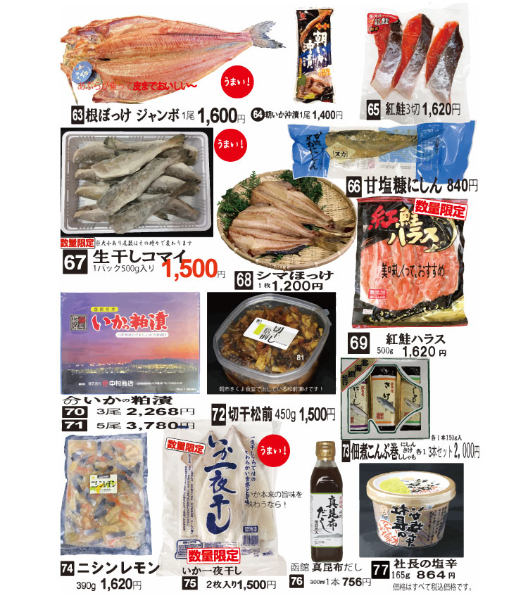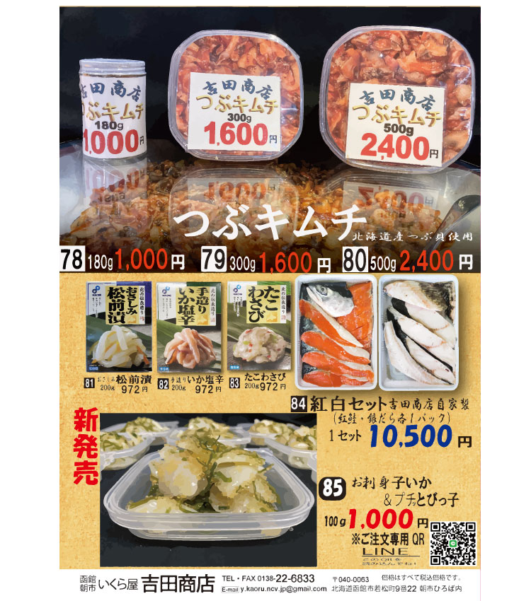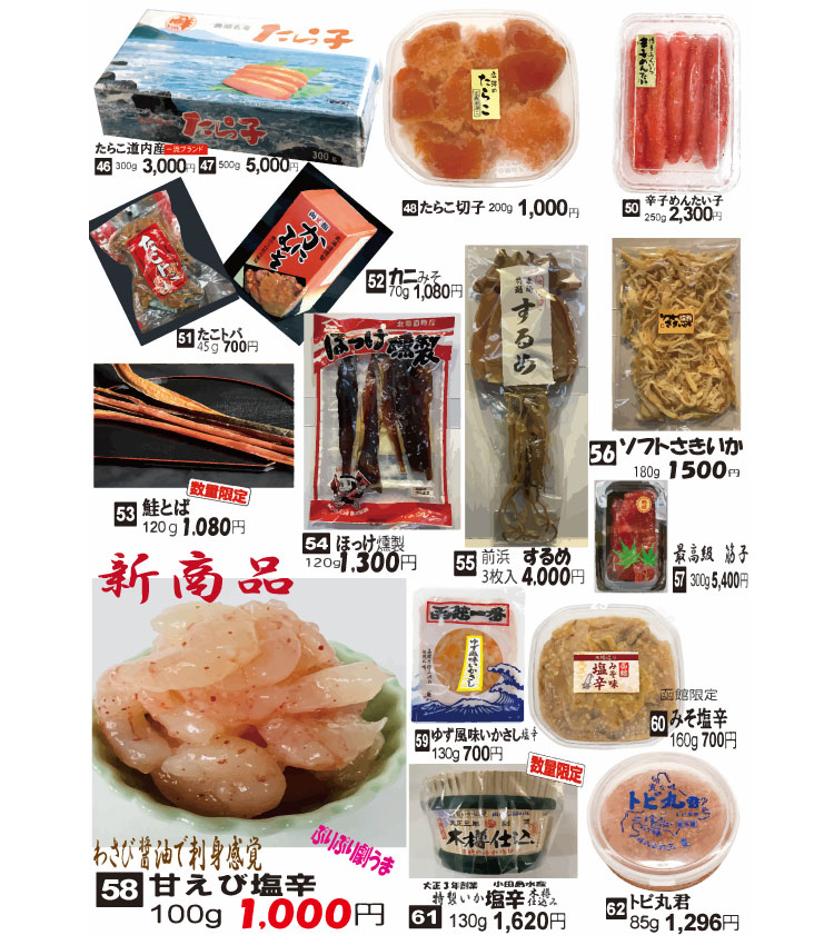 数の子がどっさりと入った松前漬の上にホタテの甘露煮をトッピングご飯のお供にもお酒のおつまみにもなる商品です。